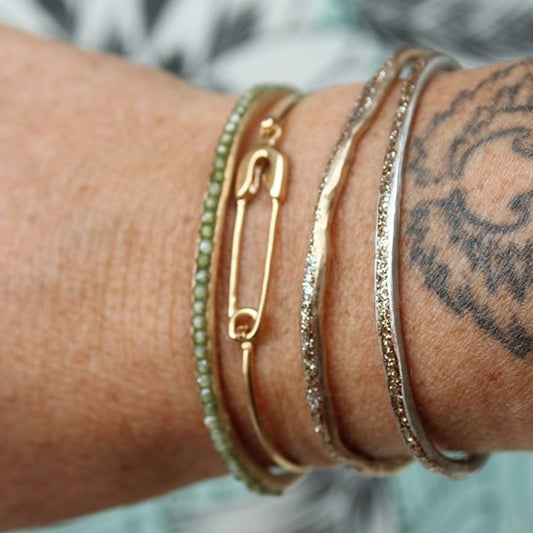 Bracelet Jonc Talisman Argent Doré Vert Militaire