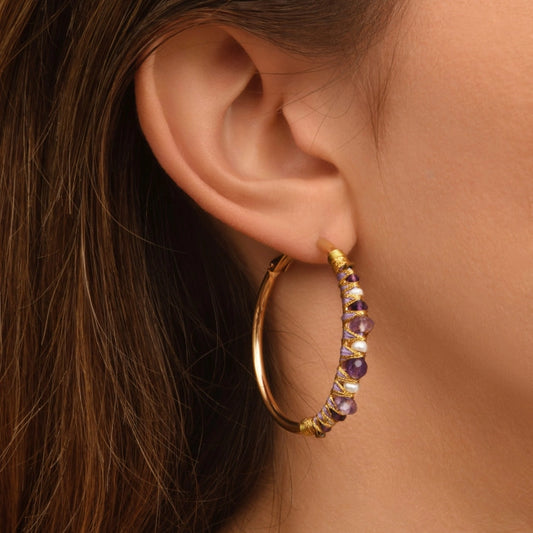 Boucles d'oreilles créoles Salinea perles et pierres de couleur - violet