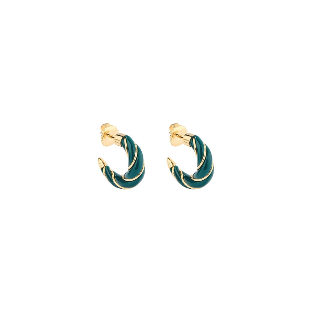 La famille Diana est de la partie avec une série inédites de bagues et de créoles aux entrelacs délicatement surlignés de métal doré, proposées en vert, en noir et dans une délicate nuance d’ivoire.