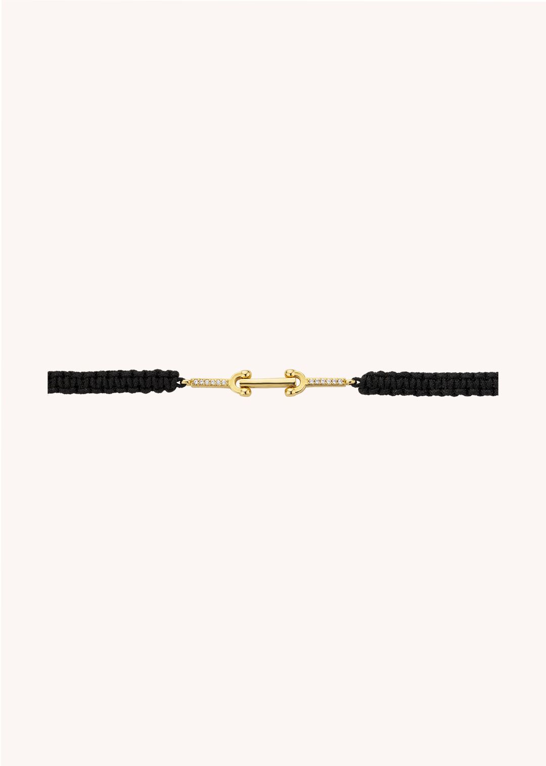 Le bracelet WEST LINK de MYA BAY, doré à l’or fin recyclé 24 carats et monté sur un cordon noir ajustable, s’inscrit dans la lignée du DIWALI LINK, avec une touche graphique bien à lui.