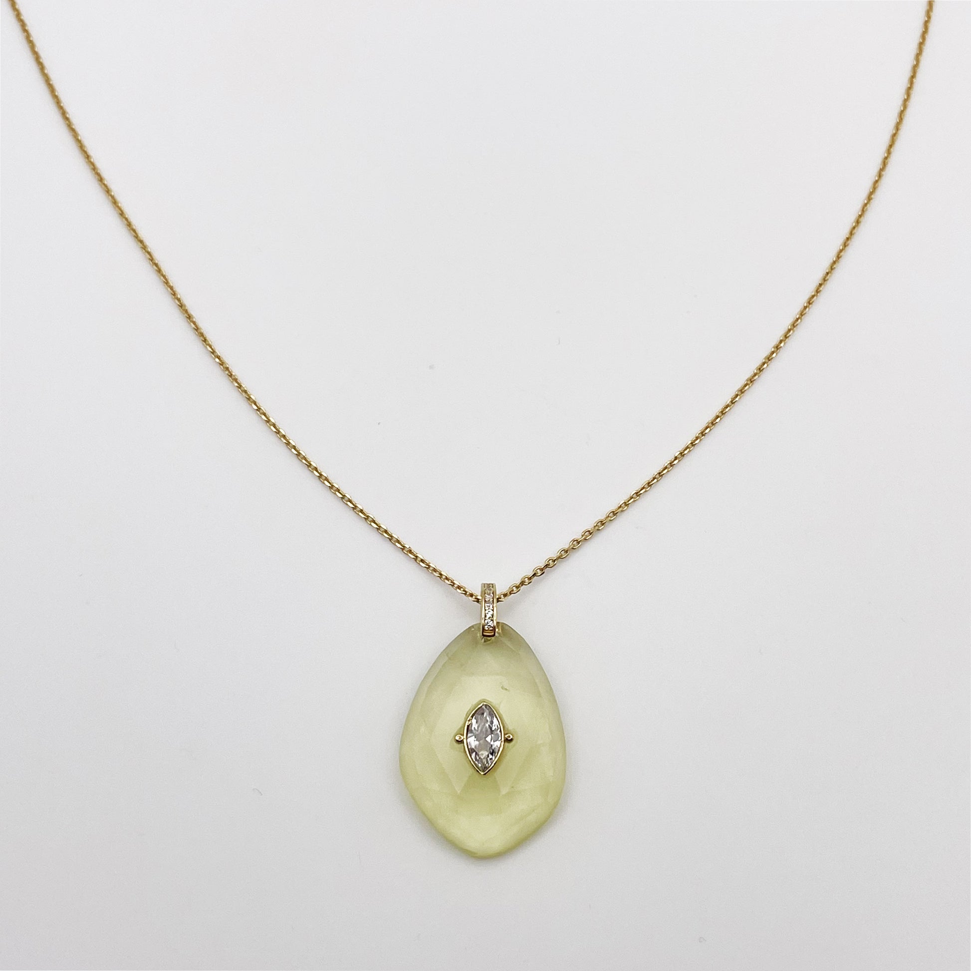 Pendentif : quartz lemon et zircon central