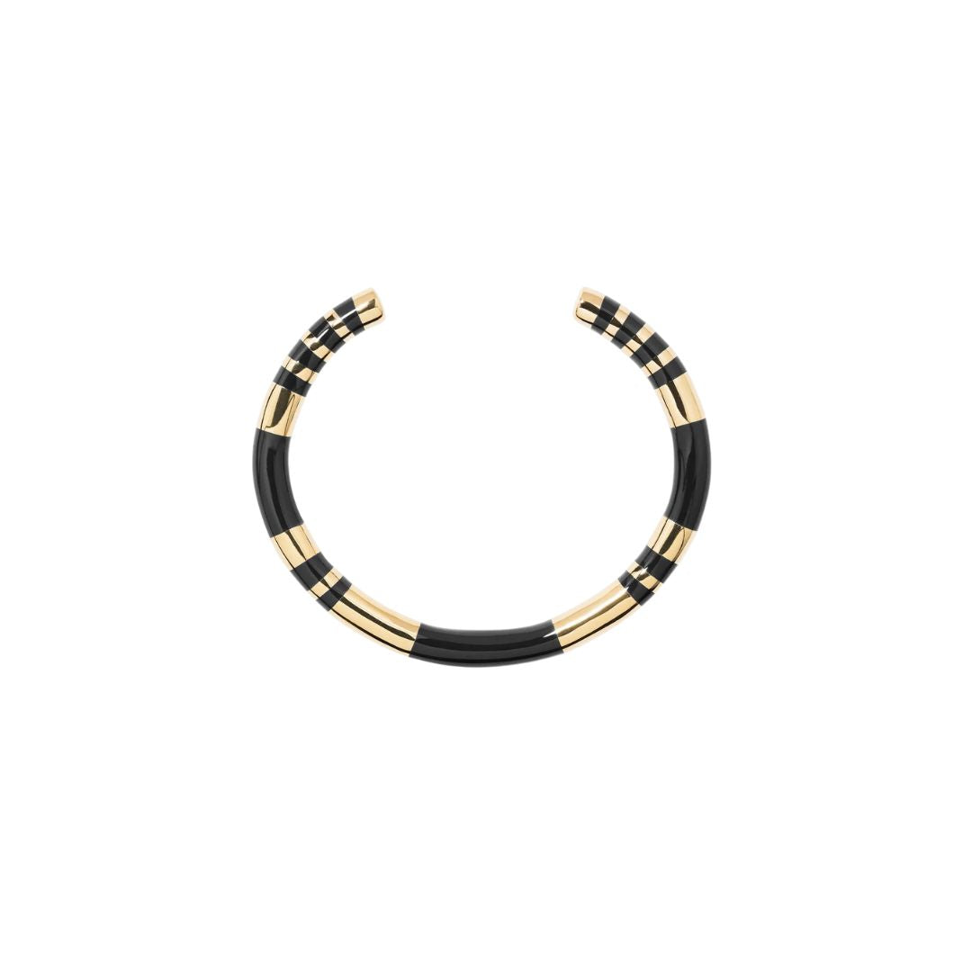 Jonc positano en résine coloris noir motif écailles de serpent et doré à l'or fin 750/1000, discrètement striée de lumière, la collection positano emprunte à la côte amalfitaine ses couleurs gourmandes et florales.